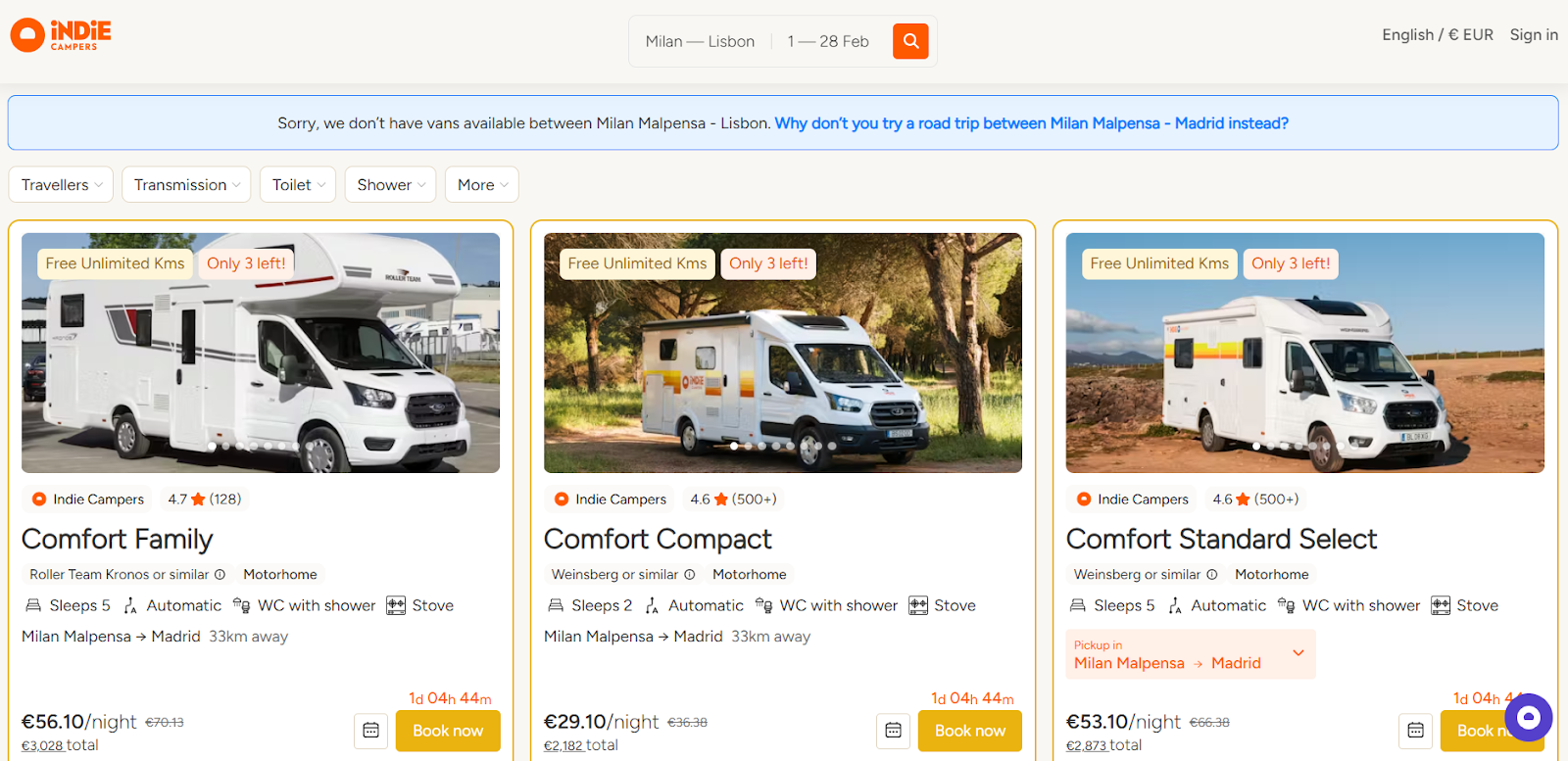 Für Indie Campers Buchungen