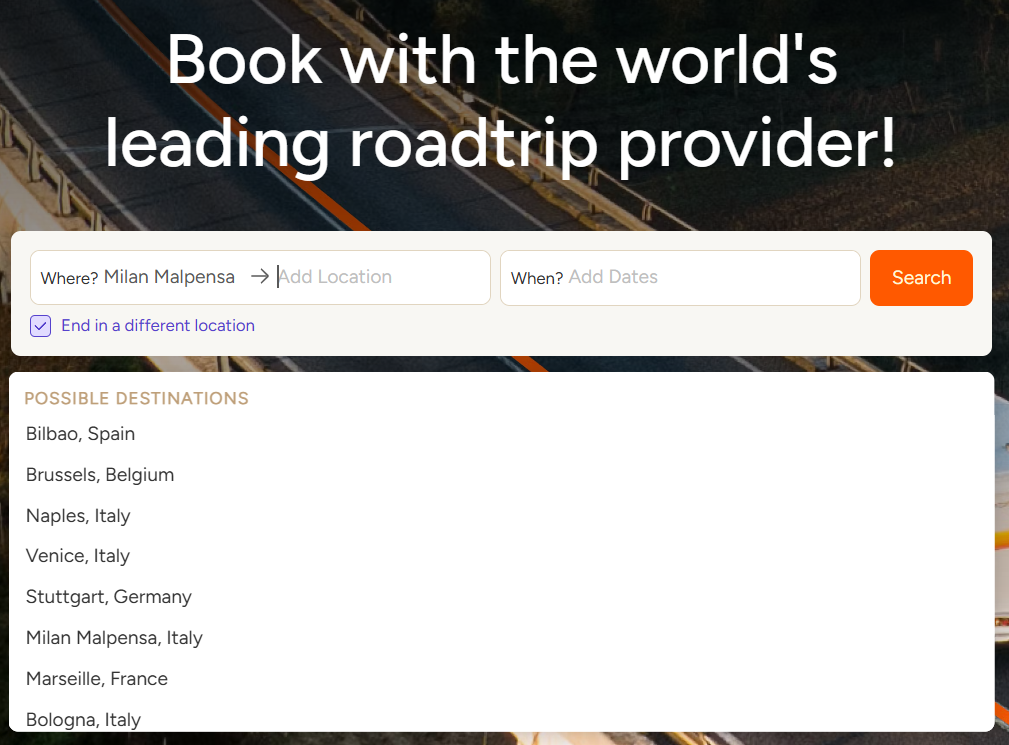 - Restrições de rota: Algumas rotas não estão disponíveis para reserva. Se quiser reservar uma rota com pontos de início e fim diferentes, por favor selecione "Terminar numa localização diferente" e o site mostrará automaticamente as localizações alternativas disponíveis para escolher. Se escolher uma localização diferente das sugeridas, aparecerá uma mensagem azul a indicar que não existem vans disponíveis para essa rota.